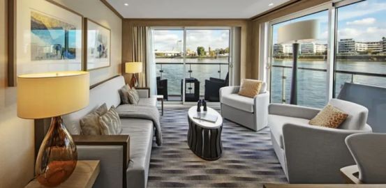 Las cabinas del Viking Annar están diseñadas para maximizar la vista al exterior gracias a balcones o grandes ventanales. Las suites Explorer, por ejemplo, incluyen zonas independientes de dormitorio y de estar, lo que potencia la sensación de amplitud y privacidad.